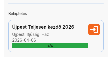 A sor végén a beléptetés ikonra kattintva meg is történik a beléptetés.