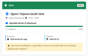 Ha a rendszer megtalálta a felhasználót és van érvényes bérleted, megjelenik a beléphető tanfolyamok listája.